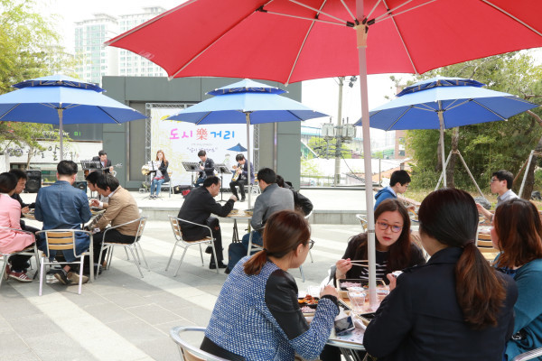 이를 위해 구는 직장인과 주민들이 도시락을 먹으며 공연을 즐길 수 있도록 파라솔 테이블 15개를 설치했다.