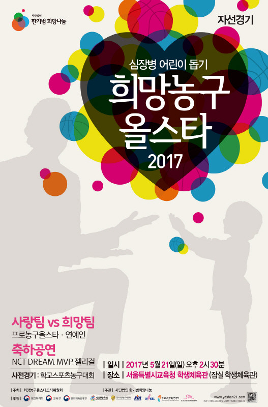 이번 ‘심장병어린이돕기 희망농구올스타 2017’ 자선경기는 재능나눔에 참여하는 프로농구선수들과 연예인 선수들이 사람팀, 희망팀으로 나뉘어 경기를 펼치게 된다.