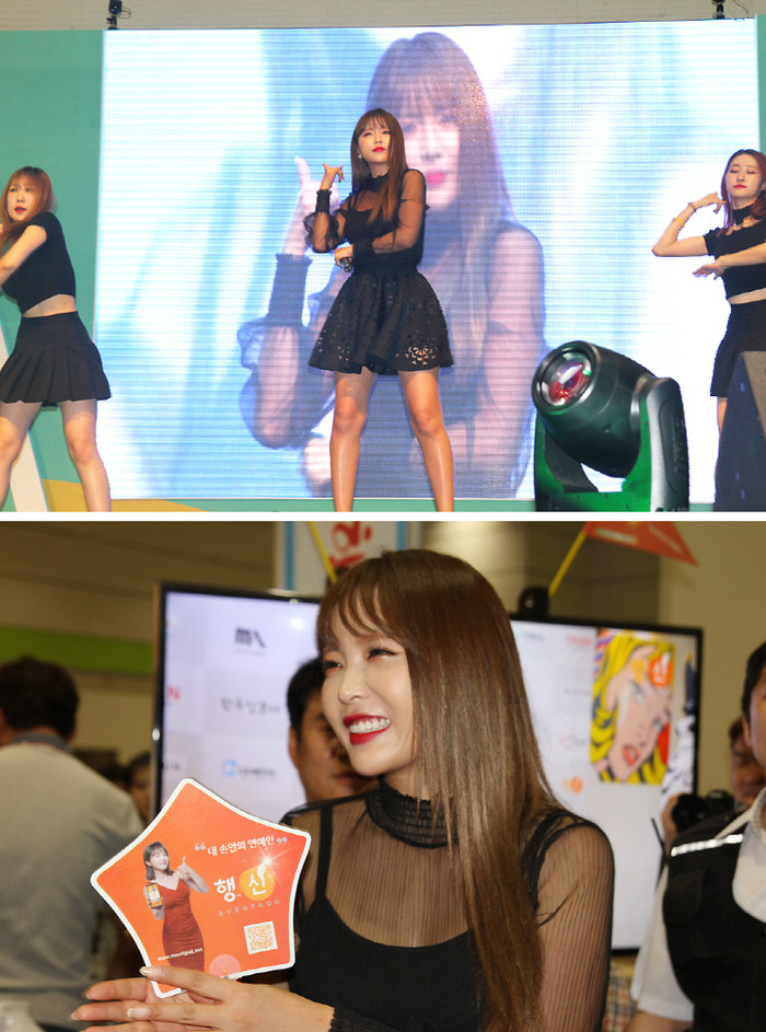 행사섭외 맞춤형 O2O 서비스 ‘내 손안의 연예인! 행신’ 전속 모델로 활동중인 홍진영은 15일부터 3일동안 서울 삼성동 코엑스에서 열리고 있는 ‘제5회 한국축제&여행박람회’ 개막일 오후 4시 특설무대에 올랐다.