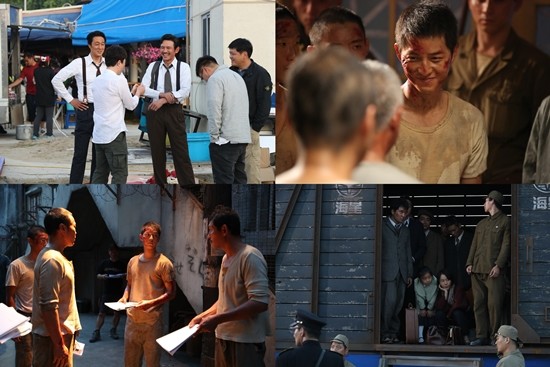 공개된 '군함도' 현장 사진 속에는 혹독한 체중 감량과 실제 전쟁터를 방불케 하는 탈출 장면을 연기했던 배우들의 웃음을 잃지 않고 화기애애한 모습이 담겨있다.