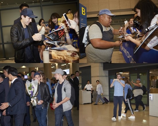 공항에 들어선 톰 홀랜드, 제이콥 배덜런, 존 왓츠 감독은 짧은 시간이지만 팬들에게 사인을 해주거나, 셀카를 찍어주는 등 팬들을 하나하나 챙기는 모습을 보여줘 오늘 오후부터 한국 팬들과의 본격적인 만남을 가질 이들이 어떤 팬서비스를 선사할지 기대를 모은다.