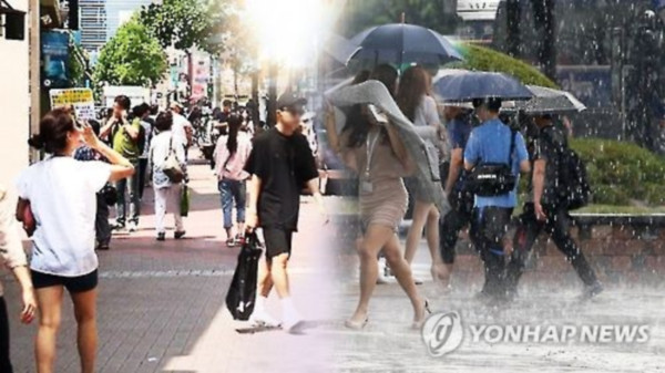 이날 오전 기상청은 “남해상에 있는 장마전선의 영향으로 전남·경남 일부 지역에는 천둥·번개를 동반한 시간당 30㎜ 이상의 강한 비가 오는 곳이 있으니 시설물 관리와 안전사고에 유의해야 한다”며 “낮 동안에는 소강상태를 보일 것”이라고 밝혔다.