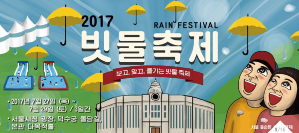 먼저 서울광장과 덕수궁길에서 남녀노소 누구나 즐기는 ‘빗물축제’가 열린다. 비를 상징하는 대형구름이 광장 중앙에 들어선다. 특설무대에선 비보이단의 공연과 유명 가수들이 공연하는 빗물 콘서트가 열린다.