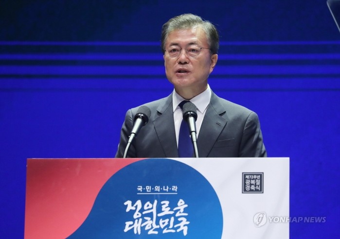 문 대통령은 15일 오전 세종문화회관에서 열린 광복절 72주년 경축식에서 경축사를 통해 한반도에서의 군사행동은 대한민국만이 결정할 수 있고 누구도 대한민국의 동의 없이 군사행동을 결정할 수 없다“며 이같이 말했다.