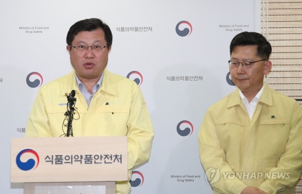 | ▲ 21일 오후 충북 청주시 오송읍 식품의약처안전처에서 김현수 농림축산식품부 차관(오른쪽)과 최성락 식약처 차장이 살충제 검출 계란 유통량 추적조사 및 인체 위해성 평가를 발표하고 있다.(사진제공=연합뉴스) | ||