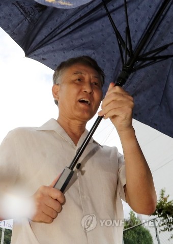| ▲ 자사 주가 시세조종 혐의로 구속돼 재판을 받은 성세환 BNK금융지주 회장이 법원의 보석 인용 결정으로 석방돼 22일 오후 부산구치소를 나서며 우산으로 얼굴을 가리고 있다.(사진제공=연합뉴스) | ||