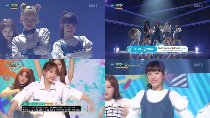 이날 방송에서는 ‘아 돈 라이크 유어 걸프렌드(I don't like your Girlfriend)’로 위키미키만의 틴크러쉬 매력을 보여주는 에너지 넘치는 걸스 퓨쳐 힙합장르의 곡을 선보였다.