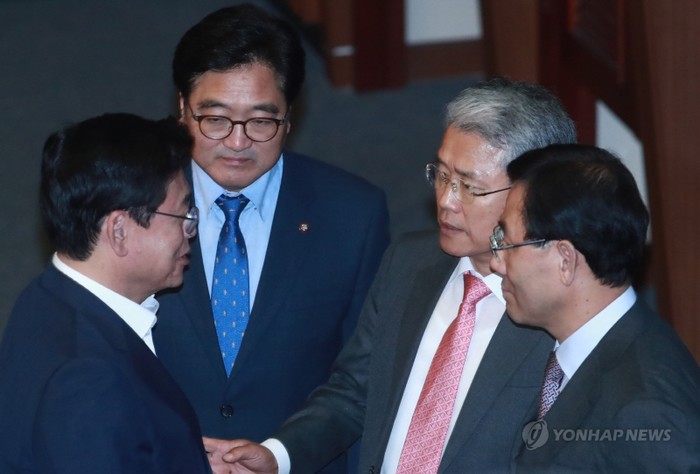 앞서 한국당 정 원내대표는 "정기국회마저 보이콧하며 전면적 대여 투쟁하는 이유는 문재인 정부의 독선과 독주, 오만과 무능에 대한 근본적 반성을 촉구하는 것"이라며 "우리는 이 실상을 직접 호소하고 알리기 위해 자유민주주의 수호 차원에서 이 같은 투쟁을 벌이는 것"이라고 강조했다.