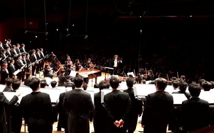 2016년에 이어 전석 매진이라는 진기록을 세우며 무대 뒤 합창석까지 가득 메운 이번 연주회는 양재무 감독의 지휘로 총 109명의 연주자가 무대에 올라 눈길을 끌었다.