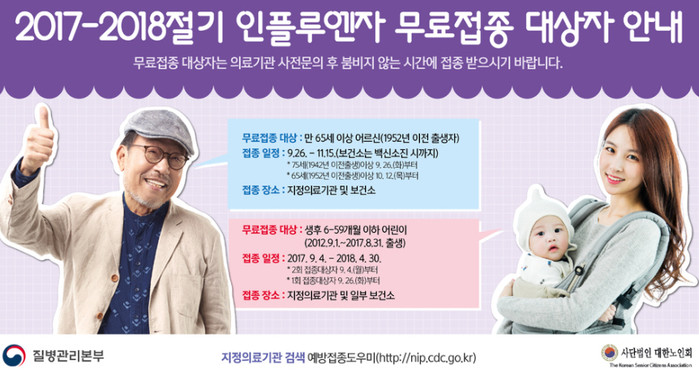 이와 함께 생후 6~59개월(2012년 9월1일~2017년 8월31일 출생자) 어린이 중 올해 7월1일 전까지 누적 2번 이상 인플루엔자 백신을 접종해 1회 접종 대상인 어린이들도 함께 접종을 실시한다.