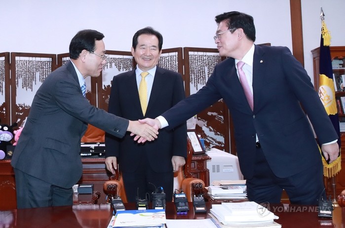 24일 현재 집권 여당인 더불어민주당이 국민의당과의 협치 제도화 방안을 놓고 고심 중인 것으로 알려진 가운데, 자유한국당과 바른정당 등 보수정당 통합 움직임도 긴밀해지고 있다는 분석이다.