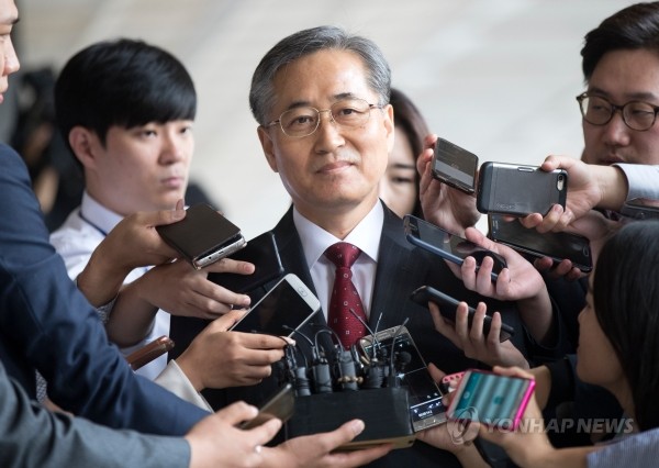 | ▲ '이명박 정부 당시 국정원 정치개입 의혹’과 관련해 추명호 전 국정원 국장이 피의자 신분으로 조사를 받기 위해 27일 오전 서초구 서울중앙지검으로 들어서며 취재진 질문을 듣고 있다.(사진제공=연합뉴스) | ||
