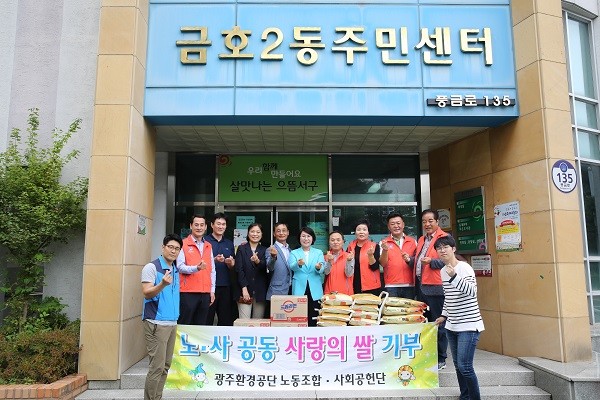 지난 27일은‘노·사 공동 사랑의 쌀 나눔 행사’를 위해 10kg 쌀 100포와 라면 20박스를 구매해 △북구 희망자활센터, △금호1·2동 주민센터, △광주여성민우회 총 4곳에 전달했다.