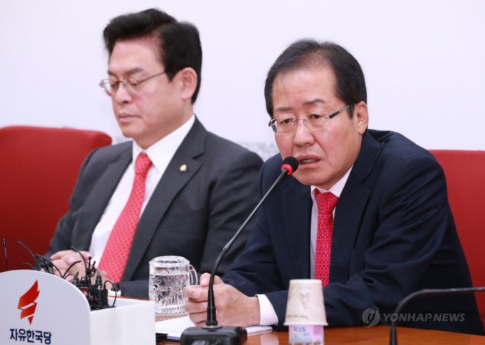 30일 한국당 관계자 등에 따르면 홍 대표는 전날 열린 당 대표ㆍ최고위원ㆍ3선의원 연석회의에서 일부 의원들이 ‘SNS상에서 홍 대표의 막말에 대해 말들이 많다’고 지적하자 “품격으로 정치하는 게 아니다”라며 이같이 반박했다.