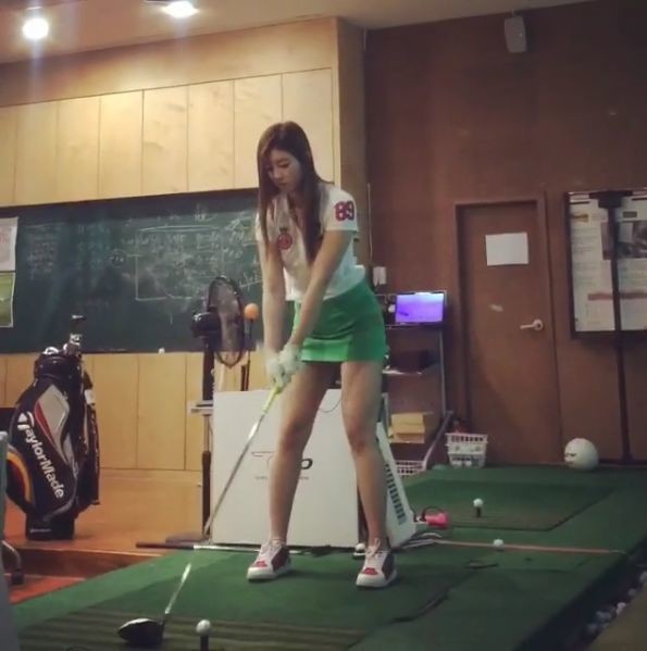 업로드된 SNS 영상에는 밀착된 셔츠와 미니스커트를 입고 스윙연습을 하는 중 드러나는 탄탄한 근육이 공개돼 뭇 남성들에 마음을 홀리고 있다.