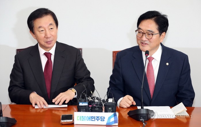 이에 대해 우원식 민주당 원내대표는 “(민주당이) 계속 양보안을 내도 한국당이 수용을 안 한다"며 “민주당은 협상에 할 만큼 다했는데 이걸 안 받겠다는 건 개헌과 관련한 공약포기를 선언하라는 것"이라고 한국당에 날을 세웠다.