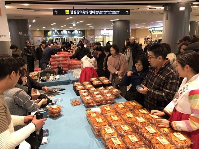 | ▲ 영암군이 서울시와 함께 서울시 송파구 잠실 환승센터에서 대봉감 직판에 나선 모습.(사진) | ||