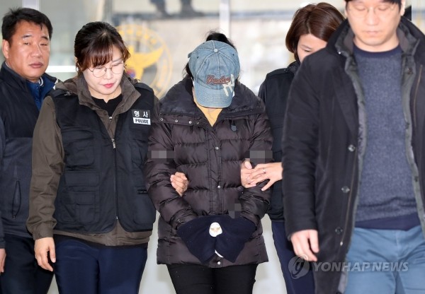 | ▲ 2일 오후 광주 북부경찰서에서 불을 내 삼남매를 숨지게 한 중실화 등의 혐의로 구속영장이 청구된 20대 친모가 영장실질심사를 받기 위해 법원으로 가기 위해 경찰서를 떠나고 있다.(사진제공=연합뉴스) | ||