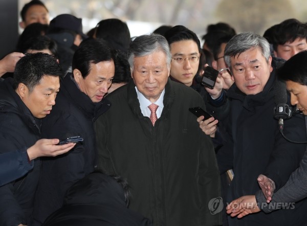 | ▲ 회삿돈을 빼돌려 거액의 비자금을 조성하고 세금을 탈루한 혐의 등을 받는 이중근 부영그룹 회장이 조사를 받기 위해 31일 오전 서울 서초구 서울중앙지검으로 출석하며 취재진 질문에 답하고 있다.(사진제공=연합뉴스) | ||