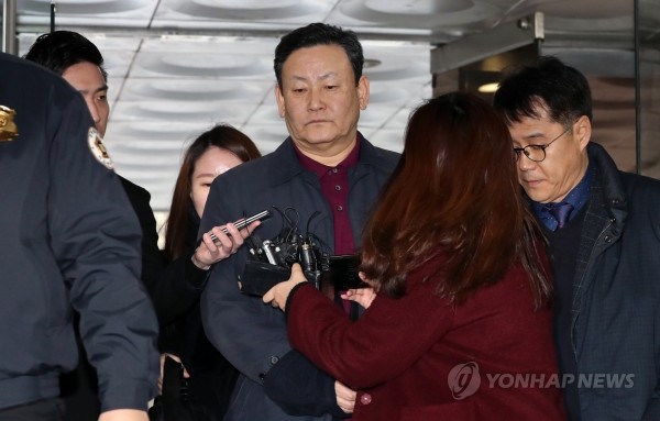| ▲ 이명박 전 대통령의 차명재산을 관리해온 것으로 알려진 다스 협력업체 '금강' 이영배 대표가 특정경제범죄가중처벌법상 횡령 및 배임 등의 혐의에 대한 구속 전 피의자 심문(영장실질심사)을 받기 위해 19일 오전 서울중앙지법에 들어서며 취재진의 질문을 받고 있다.(사진제공=연합뉴스) | ||