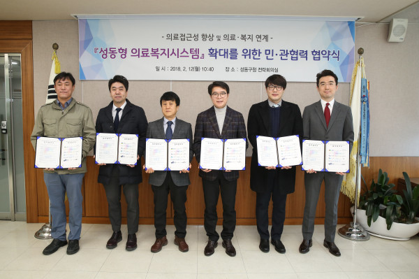 최근 구는 구청 전략회의실에서 성동지역의 ▲병원 3곳(서울동인병원, 연세슬기병원, 9988병원) ▲요양병원 2곳(굿모닝요양병원, 시온요양병원) 등 5곳과 함께 ‘성동형 의료복지시스템 확대를 위한 민·관협력 협약’을 체결했다.