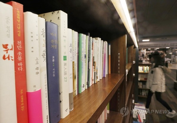 | ▲ 성추행으로 논란을 받고 있는 고은 시인의 시집이 지난 1일 서울시내 한 서점에 진열돼 있다.(사진제공=연합뉴스) | ||