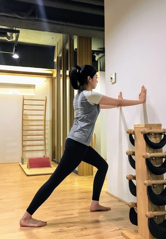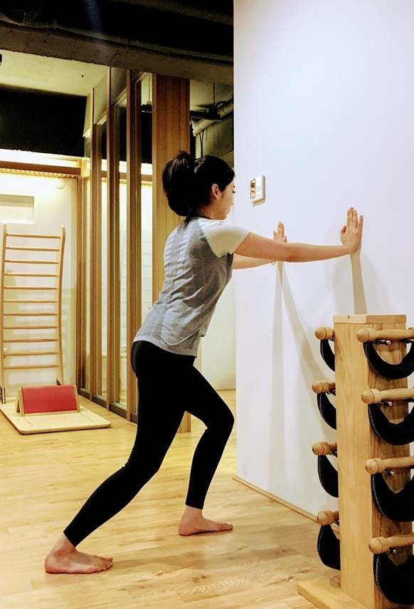 -> 벽을 짚고 무릎을 편 상태에서 종아리를 스트레칭합니다. 스트레칭 시 종아리 근육이 충분히 당기는 느낌을 받도록 하는 것이 매우 중요하다. 한번에 최소한 20초 이상 5회 반복합니다.