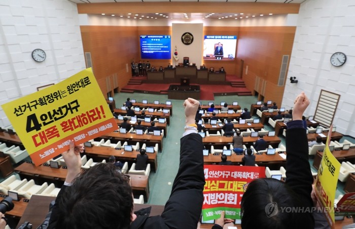 앞서 서울시의회는 전날 '서울특별시 자치구의회의원 선거구와 선거구별 의원정수에 관한 조례 일부개정조례안'을 의결했다.