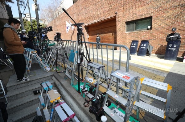 | ▲ 이명박 전 대통령의 구속 여부 서류심사가 열리는 22일 오후 서울 논현동 자택 앞에 취재진이 대기하고 있다.(사진제공=연합뉴스) | ||