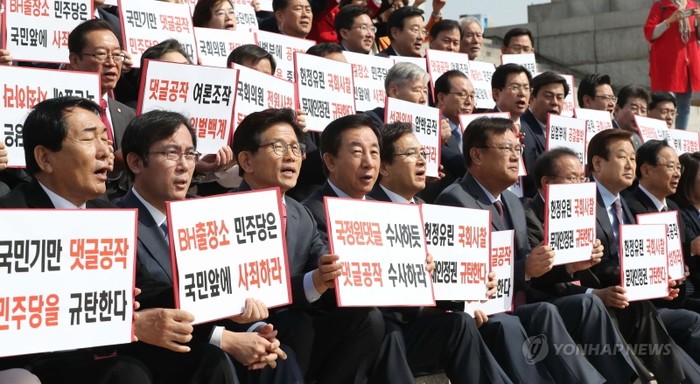 특히 '대한민국 헌정수호 자유한국당 투쟁본부' 발대식을 열고 김 기식 전 원장의 사퇴와 '민주당원 댓글조작' 사건을 문재인 정부와 여당의 "헌정농단"이라며 이를 규탄하는 천막농성에 들어가 주목된다.