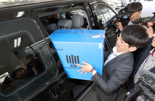 | ▲ 삼성그룹의 노조와해 의혹을 수사하는 검찰이 18일 삼성전자서비스 부산 해운대센터에서 압수수색한 자료를 차량에 옮겨 싣고 있다. 해운대센터는 2014년 초 노조를 결성한 서비스 기사들이 파업에 돌입하자 폐업 했다가 다시 문을 연 곳이다.(사진제공=연합뉴스) | ||