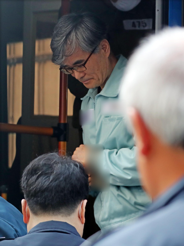 | ▲ 금융감독원의 민원처리 전문직 채용과정에 부당하게 관여한 혐의로 구속기소 된 이병삼(56) 전 금감원 부원장보가 25일 오전 서울 양천구 남부지방법원에서 1심 선고 재판에 출석하기 위해 호송차에서 내려 법정으로 향하고 있다.(사진제공=연합뉴스) | ||