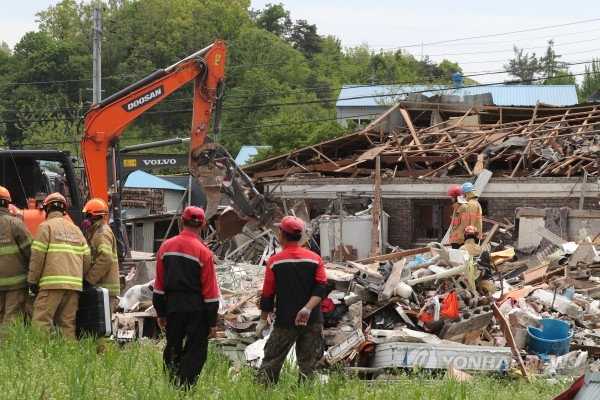 | ▲ 7일 경기 양주시 봉양동의 LP가스 폭발 추정 사고 현장에서 소방당국이 수색 작업을 벌이고 있다.(사진제공=연합뉴스) | ||