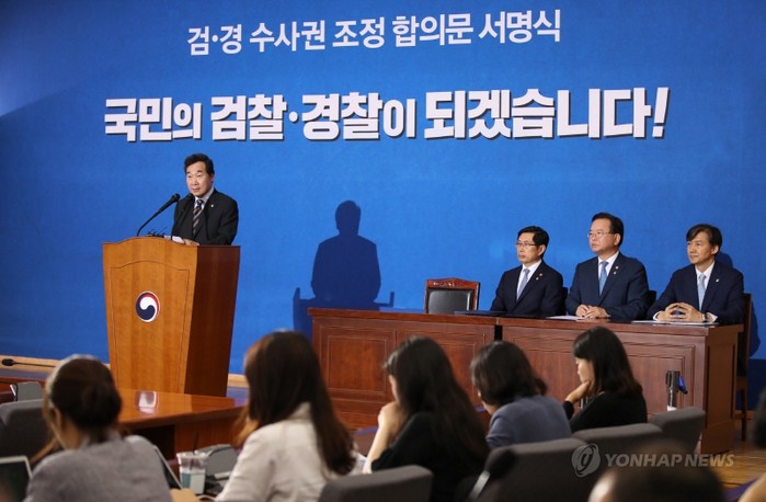 한편 이날 정부가 발표한 검찰-경찰 수사권 조정안은 송치 전 검찰의 수사지휘권을 폐지하고 경찰에 '1차적 수사종결권'을 주는 등 경찰 재량을 대폭 늘리는 데 방점을 뒀다.