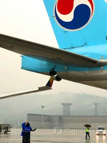 이날 출국 수속을 밟은 뒤 출국장에서 대기하던 승객 권 모씨(61)는 “비행기가 무슨 자동차도 아니고 저 넓은 곳에서 접촉사고가 났는지 이해가 안 된다”며 “어처구니없는 사고”라고 평가했다.