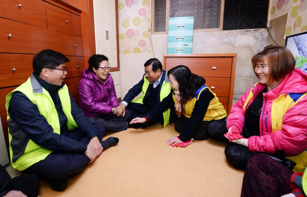 | ▲ 한 노인의 집을 찾아가 대화를 나누고 있는 청량리동 희망복지위원. (사진제공=동대문구청) | ||