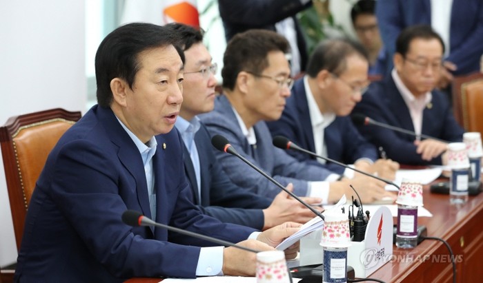 김성태 자유한국당 원내대표는 23일 오전 국회에서 열린 원내대책회의에서 "효율적이고 안전한 원전을 중단하고 사우디아라비아에 수출하는 걸 (어떻게) 받아들여야 하느냐"며 "문재인 대통령은 탈원전 정책을 깊이 반성하고 에너지 수급정책에 만전을 기해야 한다"고 주장했다.