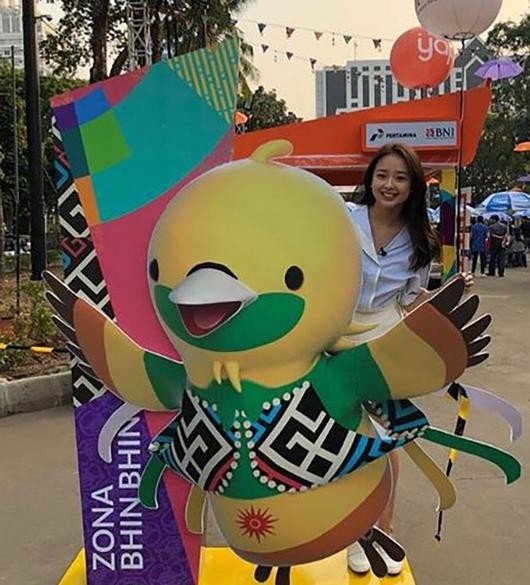 손연재는 자신의 SNS에 사진을 게재했다. 손연재는 선수촌 안에 있는 아시안게임 마스코드 인형과 사진을 찍고 있는 모습이다.