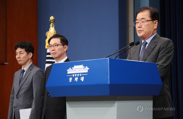 문재인 대통령의 대북 특별사절단을 이끌고 북한 평향을 방문한 정의용 청와대 국가안보실장은 6일 오전 청와대 춘추관에서 방북 결과를 발표하면서 이같이 밝혔다.