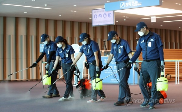 | ▲ 국내에서 3년 만에 중동호흡기증후군(메르스) 환자가 발생한 가운데 10일 오전 인천국제공항 제2터미널에서 방역업체 직원들이 소독하고 있다.(사진제공=연합뉴스) | ||