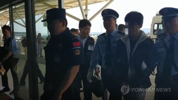 | ▲ 사진은 중국에서 붙잡힌 콜센터 조직원이 지난 11일 공안의 손에 이끌려 공항을 향하는 모습.(사진제공=연합뉴스) | ||