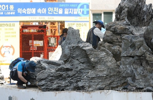 | ▲ 조경용 중국산 석재에서 붉은불개미가 발견된 대구 북구 한 아파트 건설현장에서 환경 당국 관계자들이 18일 오전 합동조사를 하고 있다.(사진제공=연합뉴스) | ||