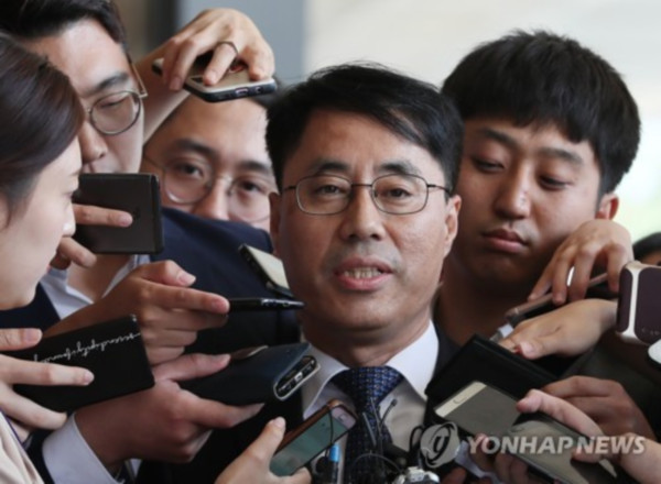 | ▲ 유해용 전 대법원 수석재판연구관이 12일 오전 서울 서초구 서울중앙지검에서 양승태 사법부의 사법농단 의혹과 관련 조사를 받기 위해 출석해 취재진의 질문에 답하고 있다.(사진제공=연합뉴스) | ||
