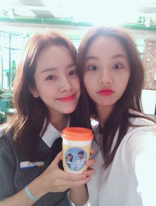 한지민은 최근 자신의 SNS에 "비오는 날 햇살처럼 촬영장까지 와준 혜리♥ 스태프 분들 모두 심쿵. 설레는 맘으로 오늘도 화이팅! #아는와이프 #혜리 #고마워 #물괴 #화이팅"이라는 글과 함께 사진을 게재했다.