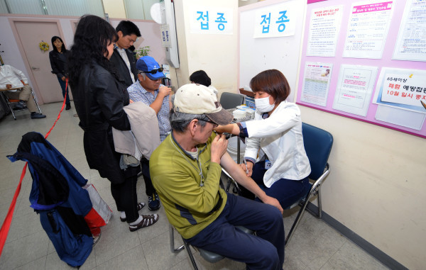 | ▲ 동대문구 보건소에서 독감예방접종을 맞고 있는 주민들. (사진제공=동대문구청) | ||