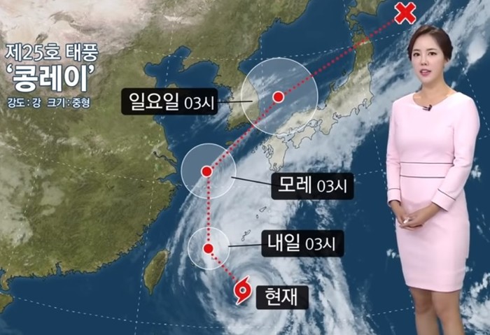태풍 콩레이의 경로는 당초 일본 열도 쪽으로만 향하는 것으로 알려졌다. 하지만 시간이 지나면서 일본 열도에서 한국 남부 지역까지 약간 북상한 경로로 진행되는 것으로 나타났다.