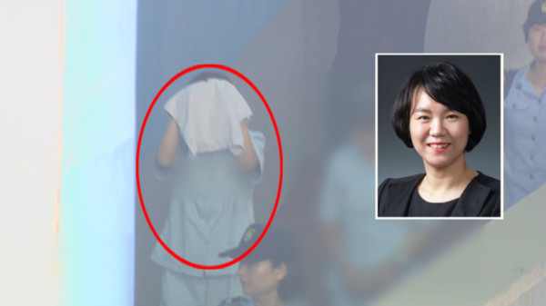 | ▲ 2017년 7월21일 당시 얼굴을 가리고 서울 서초구 서울중앙지법으로 향하는 최유정 변호사의 모습.(사진제공=연합뉴스) | ||