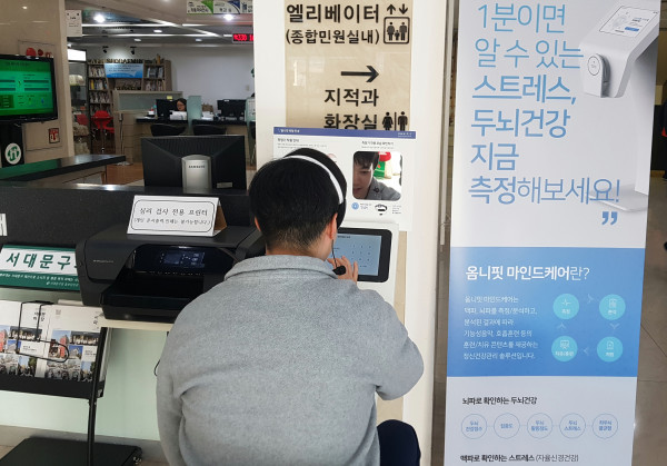 무인검진기는 생체신호인 뇌파와 맥파 검사를 통해 자율신경과 두뇌활동을 측정하고 이를 기반으로 정신건강 상태를 진단한다.