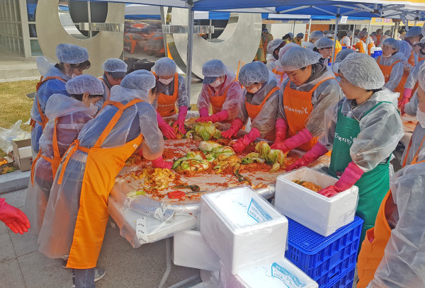 이날 봉사자들이 정성으로 만든 김장김치는 지역별로 배송해 저소득 취약계층 노인 1450가구에 전달할 예정이다.