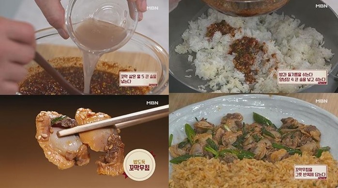 이어 꼬막비빔밥의 핵심 비법을 밝혔다. 밥을 비비지 않고 볶는 것. 밥에 들기름을 넣은 뒤 양념장을 넣고 센 불에 밥을 살짝 볶는다. 그런 다음 꼬막무침을 옆에 올리면 완성된다.